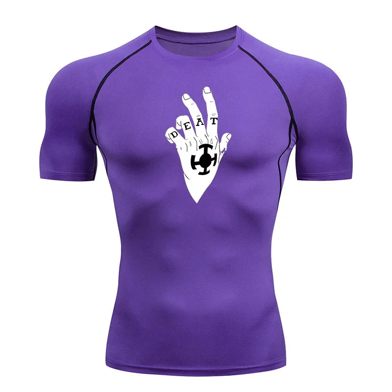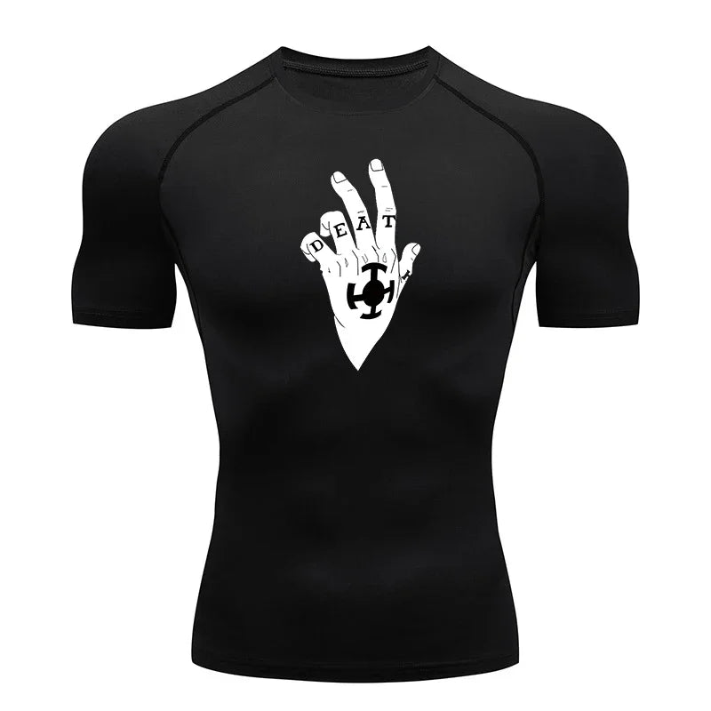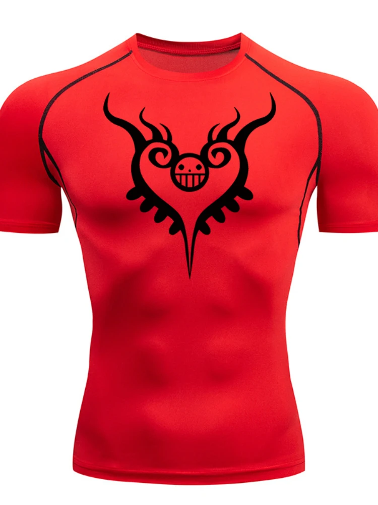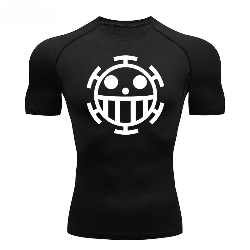 Men's Gym Workout Fitness Compression Shirts Anime Print Rash Guard Short Sleeve Undershirts Baselayer Athletic Tshirt Tees Tops