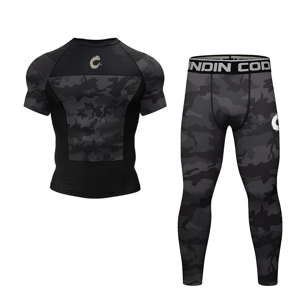 Men's MMA BJJ Quick Dry Spandex Rash Guard Set Boxing Rashguard Compression T-shirt+Shorts Muay Thai Training Workout Sportswear