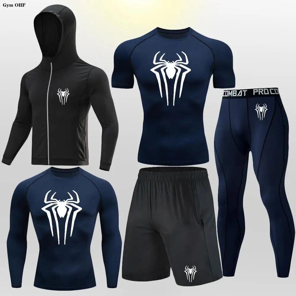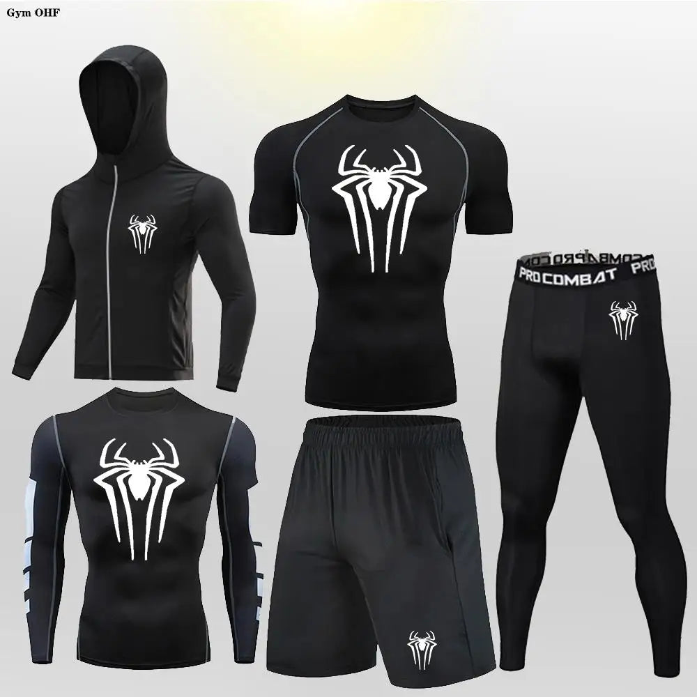 New Fashion Spider Summer Compression T Shirt Set Men Jiu Jitsu Tight Tracksuit Men Sets Fitness Clothing Sportswear Suit 2099