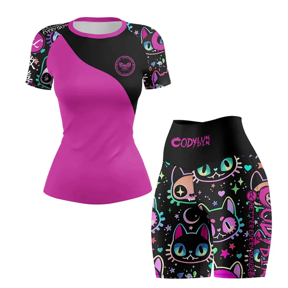 New Ladies Women Rash Guard Gym Clothing MMA Compression Sportswear Jiu Jitsu Rashguard T-shirts+Pant Boxing Grappling 4pcs/Set